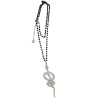 Collana da donna in acciaio 316L composta da catena a maglia rosario color nero lunga 61 cm e pendente a forma di serpente da 68 mm x 22 mm decorato con punti luce bianchi. Chiusura a moschettone e lunghezza regolabile con catena di allungo. Lunghezza minima con pendente 74 cm, lunghezza massima con pendente 79 cm. Disponibile in versione acciaio e rosè. E’ completamente anallergico, privo di nickel e non necessita di manutenzione per la lucidatura.